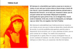 Sofía Díaz, máster en escritura creativa de la UV, sobre Teresa Vilar | Leonardo Gómez Haro, profesor del Departamento de Escultura de la Facultad de Bellas Artes (UPV), sobre Jason | Juan Carlos Sales, doctor en Geografía e Historia por la UJI de Castelló, especializado en ciencias políticas y conflictos armados, sobre Marta de la T. Mallafré | Á. Terrones, investigador y profesor de performance en Bellas Artes (UPV), sobre Solcs, Santiago López.